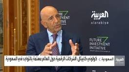 كولوني كابيتال للعربية: أنظار مايكروسوفت وغوغل وأمازون على السعودية ... مقابلة مع العربية، اليوم الخميس، على هامش مؤتمر مبادرة مستقبل الاستثمار، إن الشركات الرقمية الكبرى مثل مايكروسوفت وغوغل وأمازون تركز على السعودية.