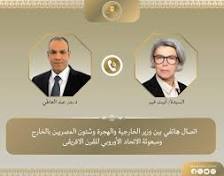 وزير الخارجية والهجرة يتلقى اتصالاً هاتفياً من مبعوثة الاتحاد الأوروبى للقرن - Facebook ... د. بدر عبد العاطي وزير الخارجية والهجرة يوم الثلاثاء ١٨ مارس اتصالاً هاتفياً من السيدة "أنيت فيبر" مبعوثة الاتحاد الأوروبي للقرن الأفريقي، وذلك ...